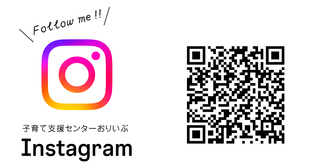 開所日や活動予定の詳細はInstagramの公式アカウントにて情報発信しております。ぜひフォローしてご確認ください。「子育て支援センターおりいぶ」で検索、またはQRコードを読み取ってください。
